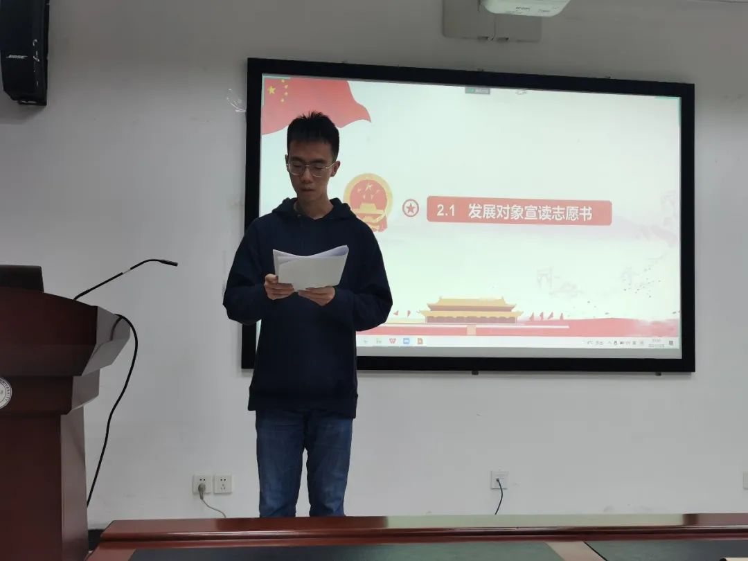 最后,由郭俊奇老师发表总结讲话:党员发展关系到党的事业的蓬勃发展,加入中国共产党意味着实现光荣与梦想,同时也意味着践行义务和责任。郭老师寄语党支部的同志们:党支部的每位同志应以中共党员的标准严格要求自己,从思想和行动上不断完善自己,要把个人奋斗的目标和实现中华民族伟大复兴的中国梦结合起来。我们中国共产党交出了非常优秀的历史答卷。新起点,新征程,我们又一次踏上了赶考之路,时代是出卷人,我们是答卷人,作为青年党员的我们,应不忘初心、砥砺前行,披荆斩棘、勇往直前,用奋斗书写无悔的青春!
