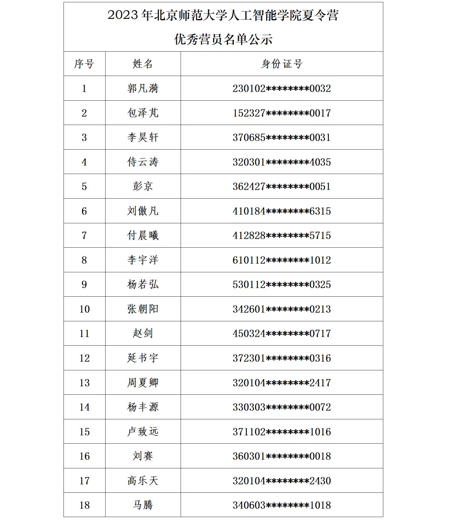 2023年beat365在线唯一官网夏令营优秀营员名单公示