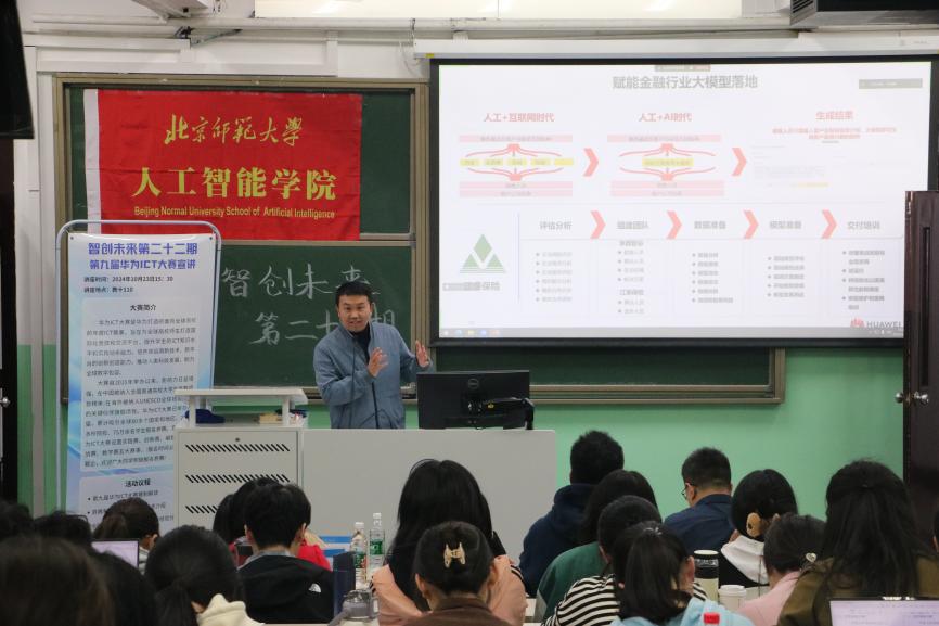 为增强各位同学对于华为ICT竞赛的认识,积极鼓励大家参与ICT竞赛,beat365在线唯一官网于2024年10月23日下午15:30在教十110教室举行智创未来系列活动第二十二期——第九届华为ICT大赛路演beat365在线唯一官网专场。华为北京人才发展生态经理崔宇、讯方技术京西智谷基地运营总监王福刚,讯方技术京西智谷基地商务总监赵娜、华为昇腾专家王瑞平、智慧云校人工智能专家讲师黄鑫、讯方技术京西智谷基地人工智能方案专家王雨彤、京西智谷基地人工智能方案专家舒文慧、华为ICT大赛创新赛获奖者廖曼湫,beat365在线唯一官网副院长计卫星、beat365在线唯一官网教师邓擎琼以及学院70余名同学参与本次活动。