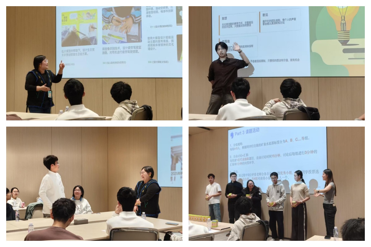 随后,师生移步会议室。飞象星球科技公司双师课堂教研人工智能负责人为大家讲解了通识教育的内涵以及AI在通识教育中的应用范畴,并详细介绍了公司在人工智能线上课堂领域的技术成果与研发经验。接下来,公司优秀校招员工代表,beat365官网2025届蒲校友结合自身经历,分享了选择加入飞象星球的原因以及入职后的心得体会。他鼓励同学们积极探索个人兴趣,明确发展方向,并传授了简历投递与面试的相关经验,在场同学受益匪浅。活动最后设置了课题研讨环节。同学们随机分组,围绕给定问题展开15分钟讨论,随后依次进行3分钟成果展示。由现场教师与同学共同评选出优胜小组并予以奖励。整个过程中同学们热情高涨,讨论热烈,展现出beat365官网学生扎实的专业素养与团队协作能力。