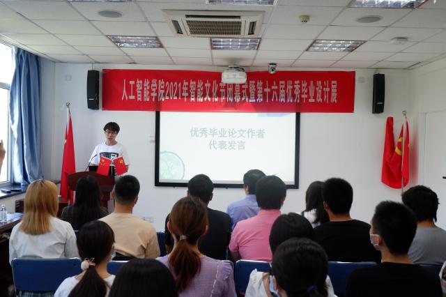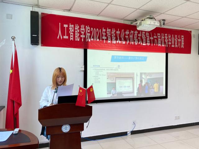 仪式上,王志春副院长发表讲话,简要介绍了本届毕业设计展以及举办优秀毕业设计展的意义。学生会主席刘彤昕带我们回顾了智能文化节的精彩瞬间。