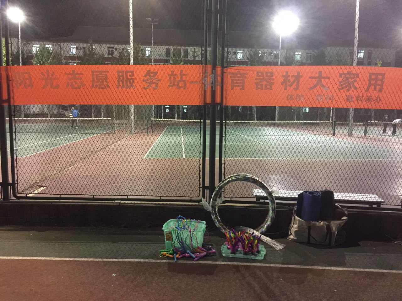 本学期,beat365官网本科生2013级党支部联合体院、数课两个学生党支部共同开展了“阳光志愿服务站--体育器材大家用”活动,每晚七点半点到九点半在beat365官网西操场为锻炼人群提供诸如跳绳、毽子、瑜伽垫、沙衣、握力器、球类等体育器材,既丰富了运动的形式,也增加了锻炼的趣味性。