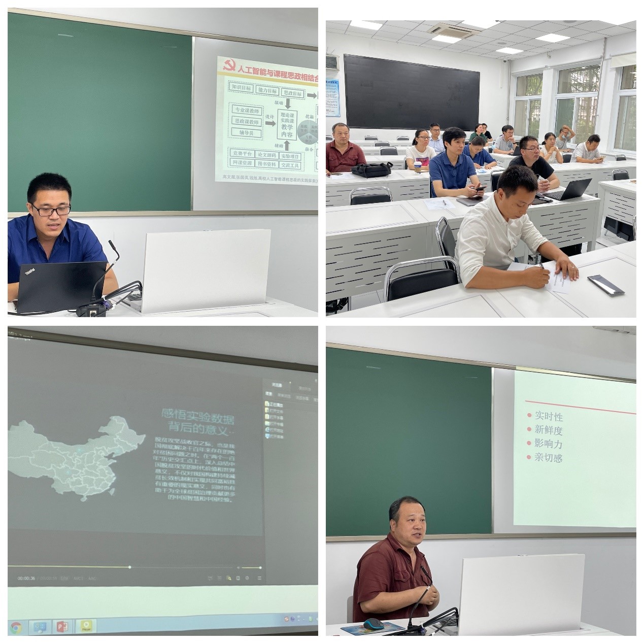 副院长郭俊奇老师主持了会议。郭老师首先进行了主题为“AI时代,课程思政融合双创教育培养时代新人”的汇报,从学院开设专业开展课程思政建设的意义、存在的困难及解决方法、以及典型案例等方面阐述,强调了课程思政建设的重要性和迫切性。