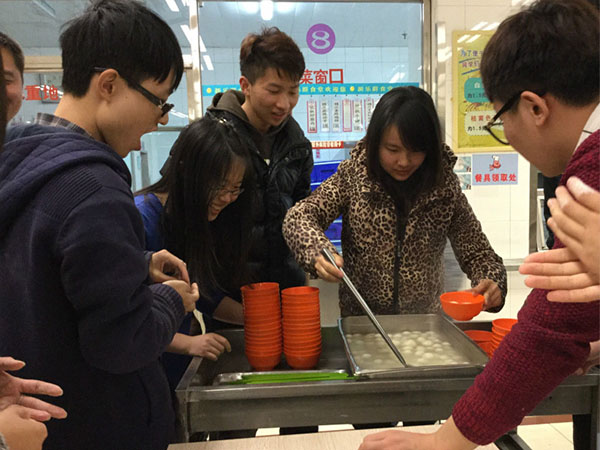 为了迎接中国的传统节日元宵节,2015年3月5日晚7点,2013级电子班在新乐群三楼举办了一场包汤圆的活动。