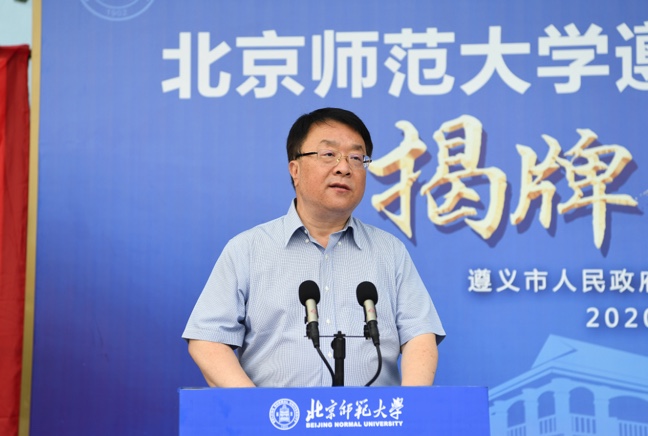 魏树旺代表遵义市委市政府和800万老区人民,祝贺“一院两基地”挂牌成立。他表示,“一院两基地”的建立是继成功举办beat365在线唯一官网遵义附属学校后的又一硕果,既充分体现了北师大贯彻落实党中央、国务院推进西部大开发战略部署的坚强决心和迅速行动,又彰显了北师大对革命老区的真挚情感和红色情怀。北师大作为全国高等师范教育的排头兵,是国家人文社科和科技创新的重要力量,通过“一院两基地”的平台,北师大和遵义市的校地合作交流一定会结出更加丰硕的果实。