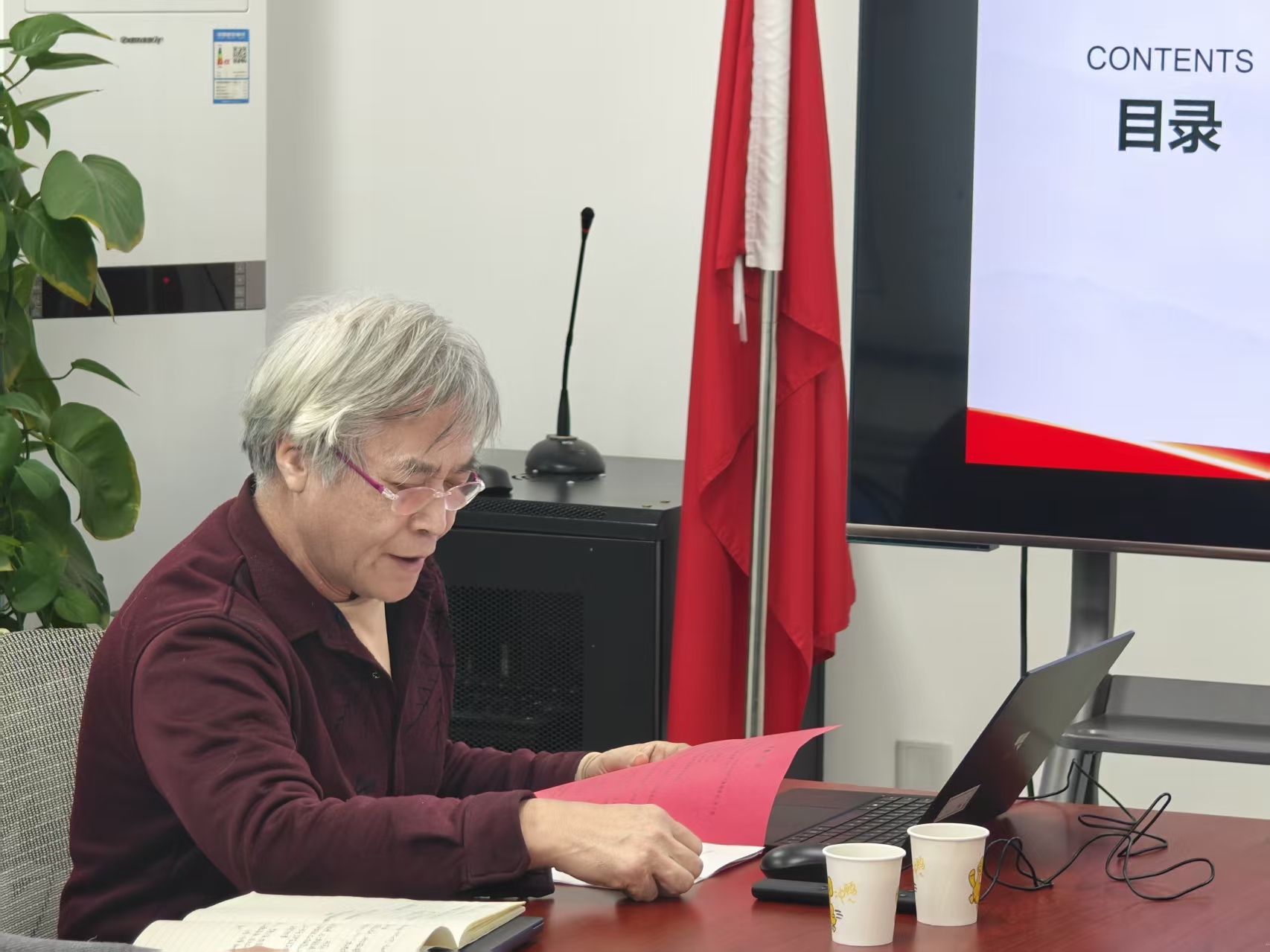 首先,廖英老师介绍2025年度党支部书记述职评议考核工作的总体安排与会议议程。本年度,学院4个教工党支部、1个离退休党支部、2个学生党支部参加现场述职,其余支部进行书面述职。
