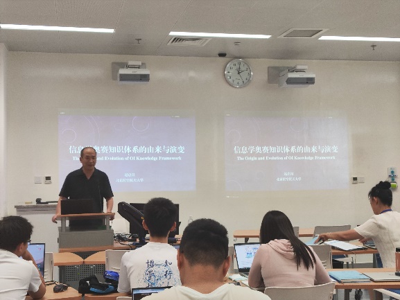 领航计划-NOI教师培训不仅安排知识讲解与经验传授,同样注重教练视野的拓宽。8月29日下午,组织单位特别邀请到NOI科学委员会副主席赵启阳为学员们作题为“信息学奥赛知识体系的由来与演变”的报告。赵启阳以计算机科学的源起为引,通过简单但生动的知识点实例,引导各位学员准确地把握信息学奥赛知识体系的整体脉络。