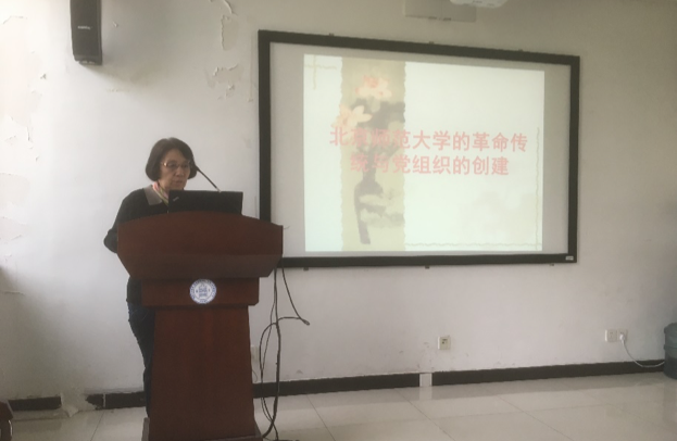 李志英老师生动翔实地讲述了京师大学堂的创办与复建、拒俄运动、五四运动等重要历史事件的来龙去脉,高度评价了beat365在线唯一官网在开启中国现代高等师范教育先河、投身反帝反封建革命运动等方面的光辉业绩,热情赞扬了北师大师生在历次革命运动中的责任与担当。本次讲座由党支部书记尹乾老师主持,信息学院分党委书记别荣芳老师出席。