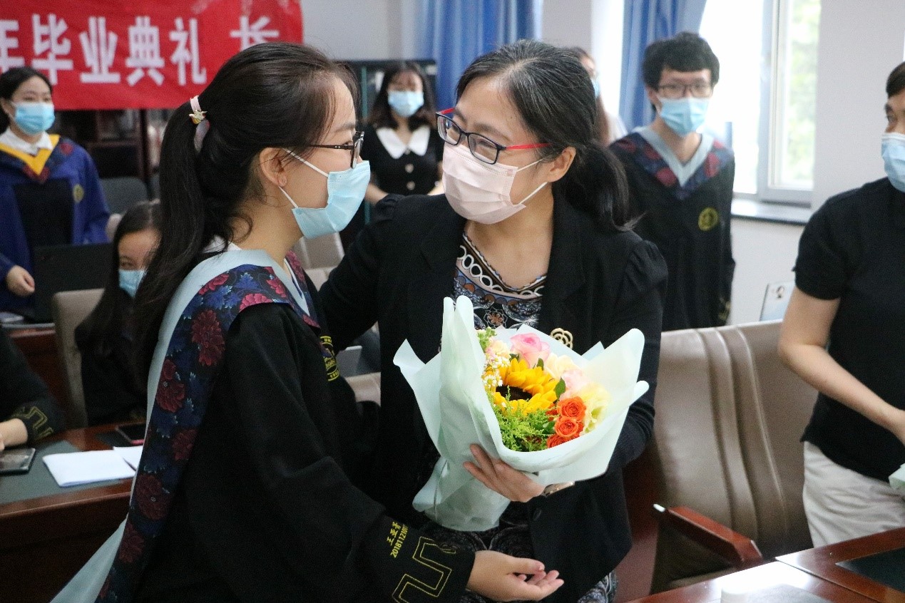 最后,执行院长姚力老师进行毕业致辞。她回顾了2022届毕业生在校期间的表现,对同学们锐意进取、乐于奉献的精神表示肯定,并对毕业生提出三点期望:第一,做一个有理想、有情怀的人;第二,相信“千里之行始于足下”;第三,一定要有规则意识。她表示,希望同学们带着“博学慎思,知行合一”的院训,不负韶华,不负时代,不负人民。