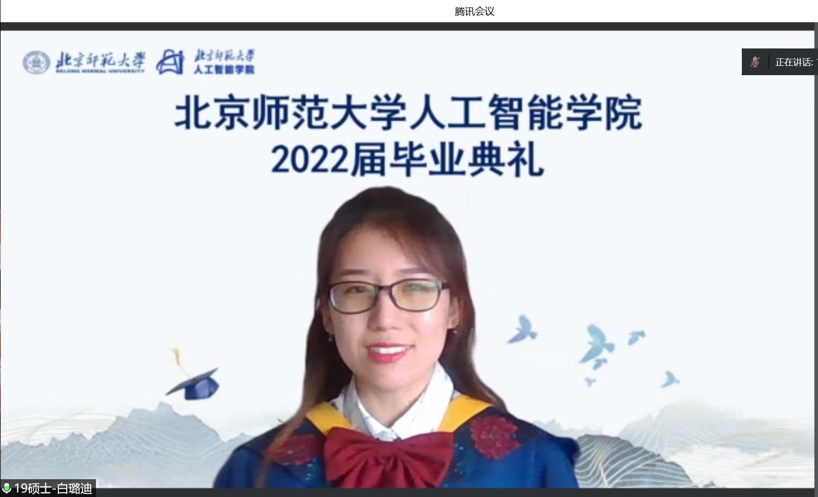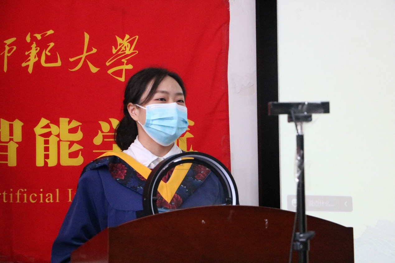 本科毕业生代表贾馥榕、研究生毕业生代表白璐迪同学发言。她们介绍了自己的学习生活经历,也表达了毕业生对学校的留恋与祝福,号召同学们带着“学为人师,行为世范”的校训砥砺前行,为师大百廿校庆献礼。