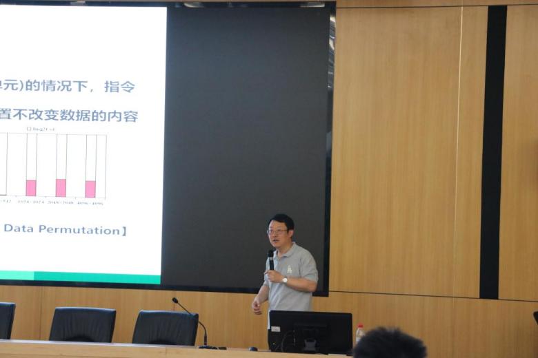 沈教授接着介绍了如何通过改变电路实现更复杂的功能,利用SRAM的随机访问特性解决控制流不一致等问题。他列举向量指令在高性能处理器中的应用,强调数据布局和电路设计优化的重要性,以及通过矩阵乘法提高数据访问效率和减少用时的方法。实验结果显示,对功耗和用时优化效果显著。