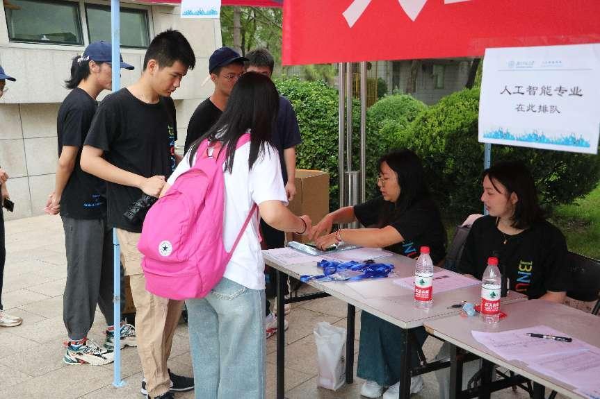 清晨四点半,高年级同学们准备物资、布置迎新站台。六点开始,新生和家长陆续达到,高年级同学们耐心细致地为学生办理电子注册、信息填报、物资发放、校园引领等工作,并为新生和家长拍摄纪念照片和视频,为同学们留下珍贵的纪念。