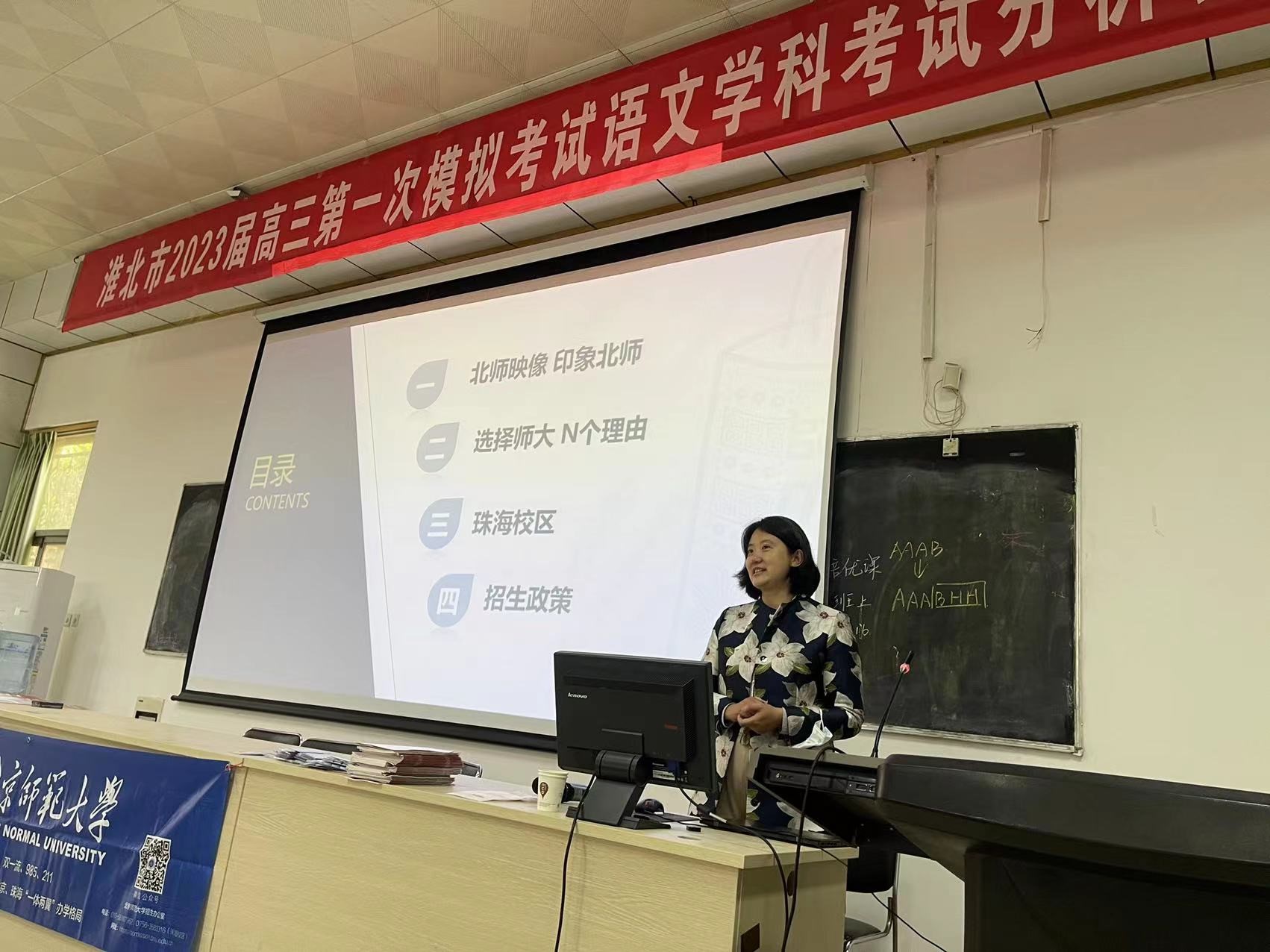 4月27日,学院本科招生宣传工作组的王醒策老师抵达淮北一中,对这所优质生源基地校展开回访联络工作,并与校方代表一同开展座谈宣讲活动。在具体的咨询问答中,王醒策老师重点面向教师、学生和家长,详细解读beat365官网目前实行的招生政策、计划和人才培养举措,促进了该校师生对北师大的进一步了解。