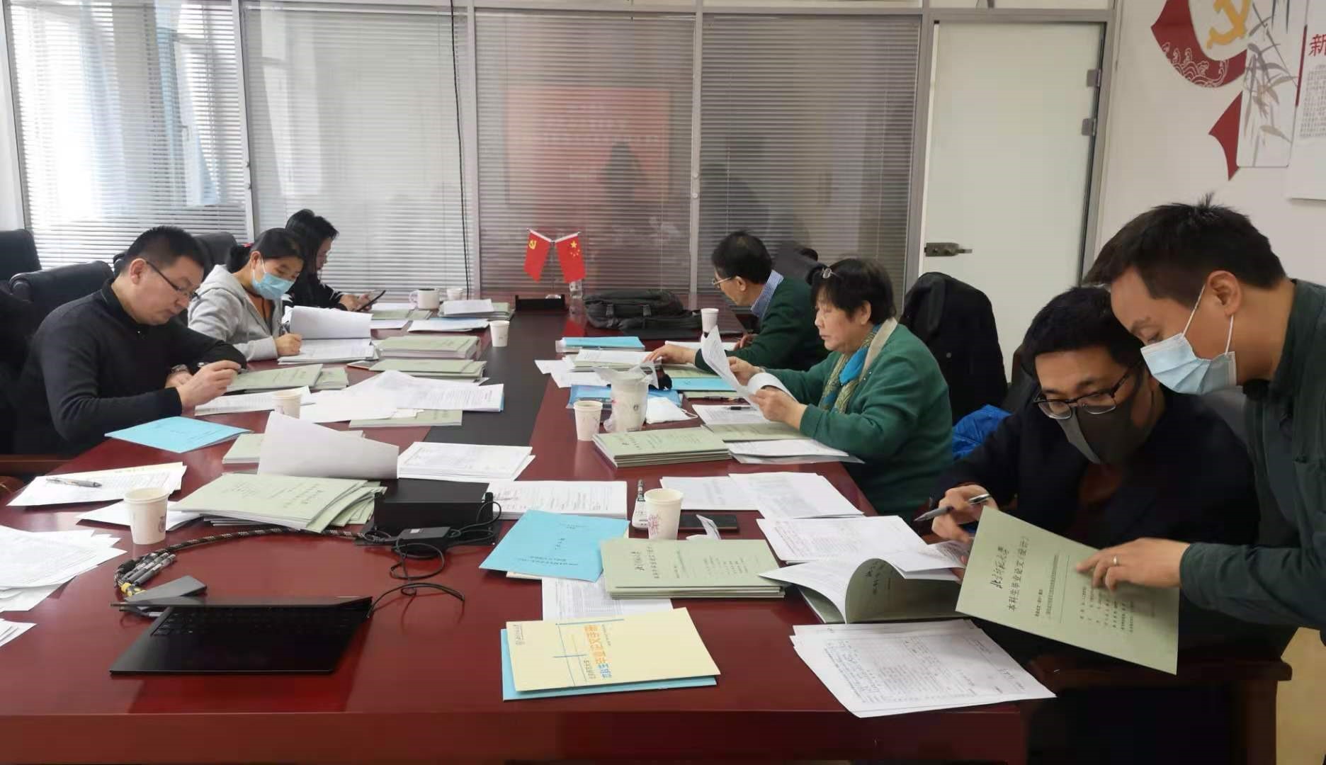 督导专家在进行毕业论文检查、填写评价记录表