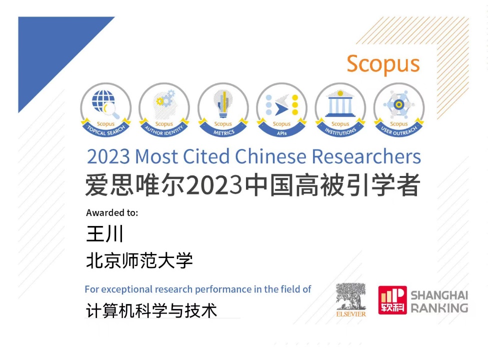 2024年3月28日,爱思唯尔(Elsevier)发布2023“中国高被引学者”(Highly Cited Chinese Researchers)榜单,beat365官网王川教授继2020年、2021年、2022年作为电子科学与技术学科和计算机科学与技术学科高被引学者入选后,连续四年入选榜单。