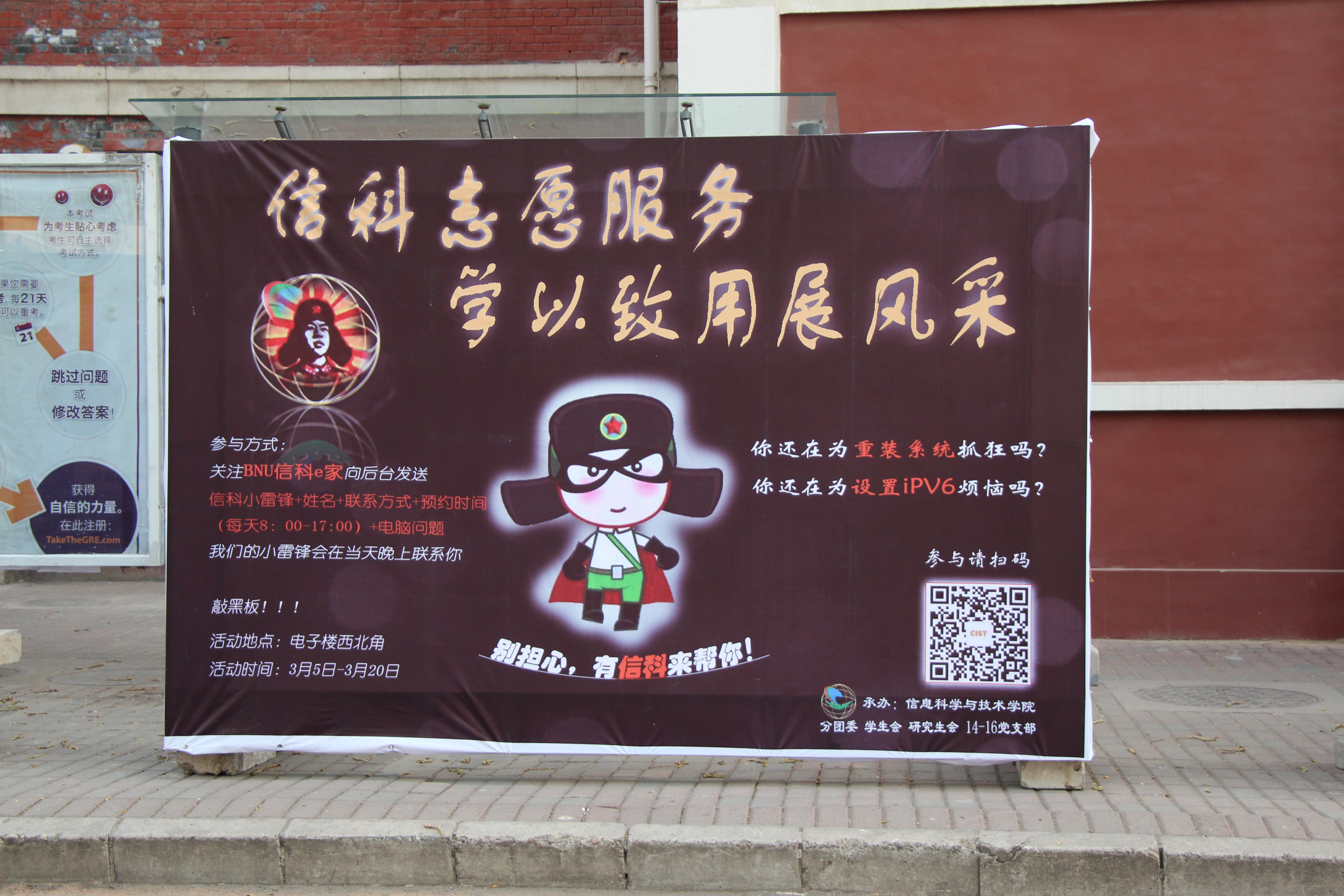 3月2日,“BNU信科e家”微信公众号发起了争当信科小雷锋的志愿者招募活动。经党支部与团支部的号召,同学们积极响应,成立了百余人的小雷锋团队,并参加了技术培训。