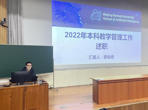 学院副院长郭俊奇、王志春、胡晓雁,党委副书记王学松、分别就分管工作及个人廉洁自律情况述职。党委书记杨学玉从发挥党委的政治核心作用,扎实落实民主集中制,不断推进干部队伍建设、思想政治工作和师德师风建设、巡视整改落实落细、基层组织建设、学院党的建设等各项具体工作,以及将学院的发展与国家、学校和老师们个人的发展结合在一起,学院教师队伍建设等方面进行了述职,同时汇报了个人廉洁自律情况。本年度学院党委发挥政治核心作用,团结带领师生以奋发有为的精神贯彻落实党的二十大作出的重大决策部署,以习近平总书记给“优师计划”师范生的回信精神指导工作。学院领导班子攻坚克难、开拓创新,贯彻落实各项工作要求,全体教职工敬业奉献、履职尽责,保证教学科研管理工作顺利开展。 与会人员对学院领导班子和班子成员进行了民主测评。