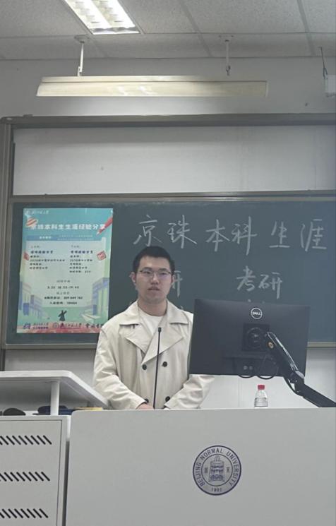 在上大学的前两年时间里,我过的十分迷茫。对于未来的方向,自己个人的发展都没有任何的思考,学习和休息之间没有掌握好平衡。2022年末,我在郭宇老师的指导下选择了考研这条路,并为此准备了一年的时间。最后也是没有辜负老师和父母的期待,成功考出了本班级的最高分,也成功上岸北师大beat365在线唯一官网。